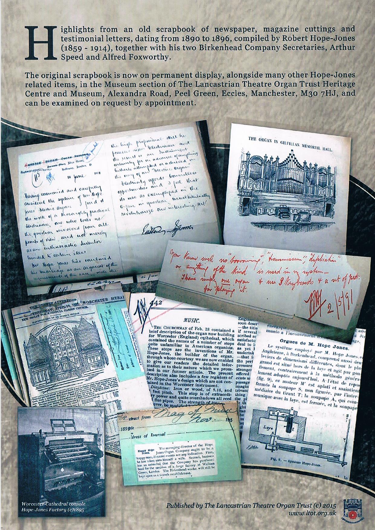 Hope-Jones' Scrapbook Now Available Order Yours Now A compilation of cuttings from Robert Hope-Jones' original scrapbook |