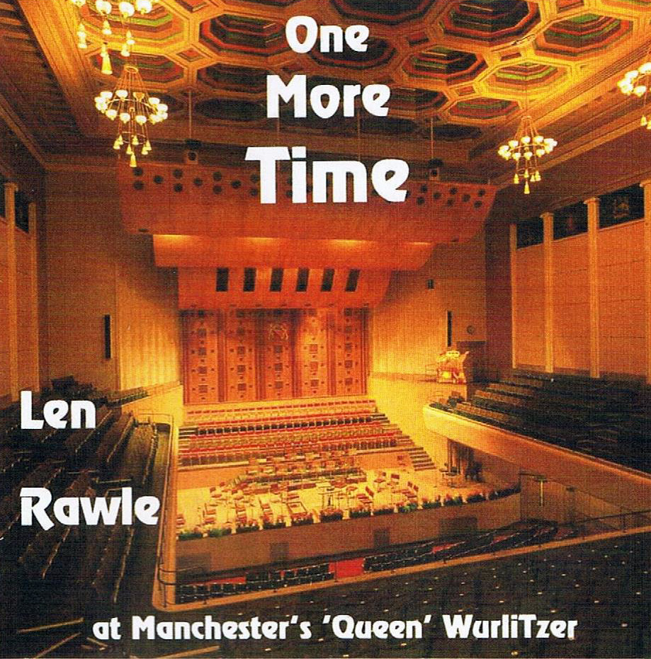 ONE MORE TIME - LEN RAWLE Recorded at Manchester's Free Trade Hall in 1996, just prior to the Wurlitzer being removed. CD (LTOT804) Price £6.00 A great recording with the microphone being placed in the best seat in the hall. A full bodied sound. Tracks include: Even Now, Pasadena, Perfidia, Darling Je Vous Aime Beaucoup, On My Own, Curtain Up, Granada, The First Man I Remember, plus more |