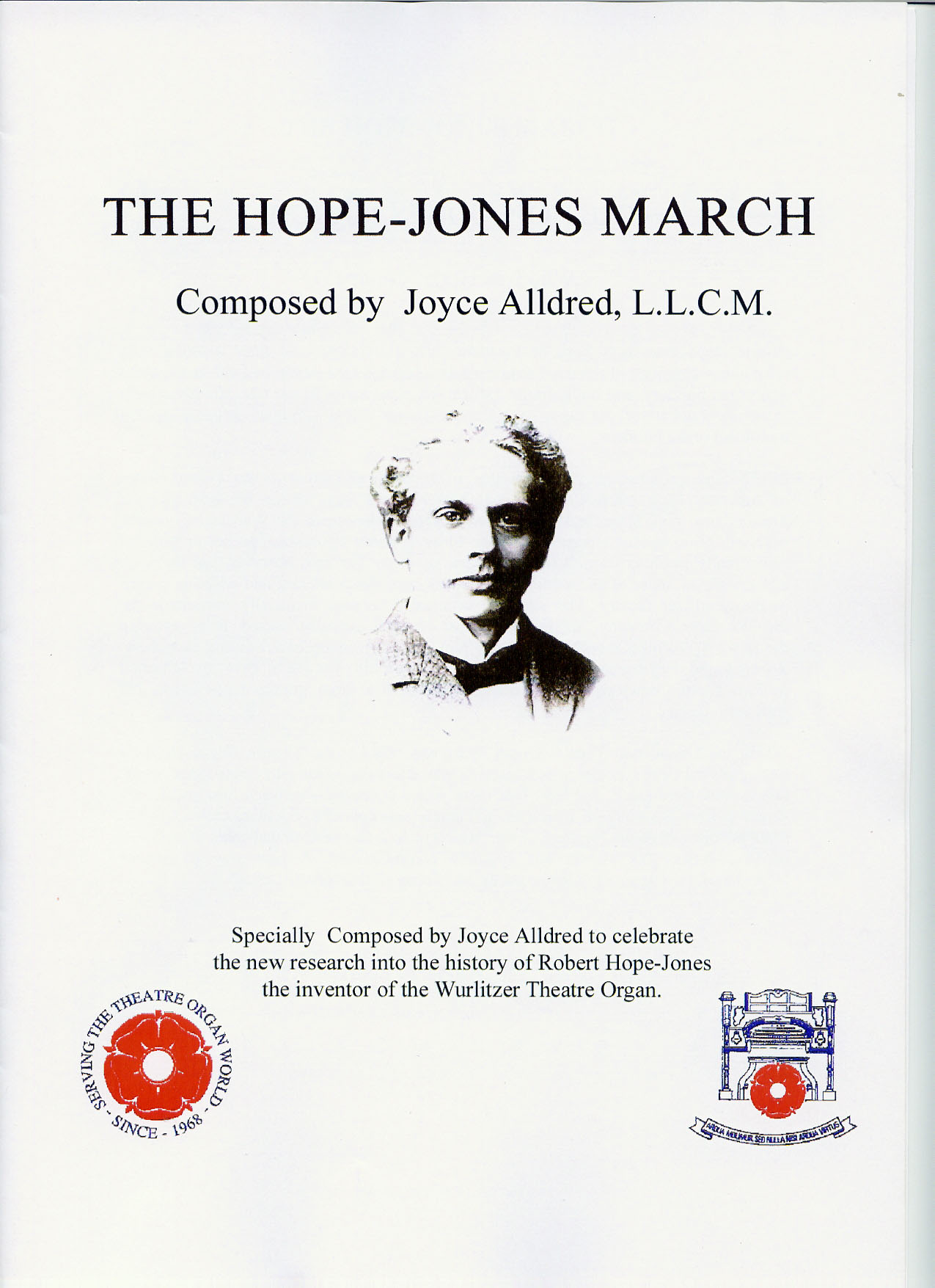 A March written by Joyce Alldred L.L.C.M. to mark the opening of The Lancastrian Theatre Organ Trust's Theatre Organ Heritage Centre and Museum, at Peel Green, Eccles. The Museum houses one of the finest collections of the work and memorabilia of Robert Hope-Jones, acknowledged as the father of the Wurlitzer. As with the two other marches Joyce has again kindly donated all royalties from the sales of this music to the Trust. |